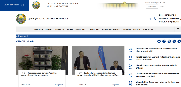 Qashqadaryo Regional Administration: https://gov.uz/oz/qashqadaryo